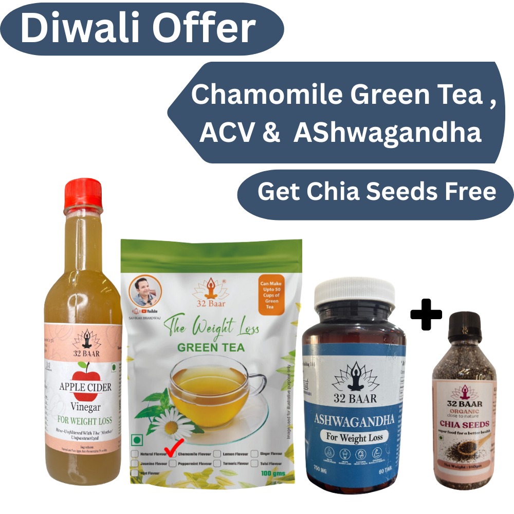 32 Baar Combo Of 2 Green Tea Bags(Chamomile.Lemon)& Apple Cider Vinegar With Chia Seeds 1. 2 Green Tea Bags: Two Flavorful Options: Lemon Green Tea: Enjoy a zesty and invigorating pick-me-up with a citrusy twist. Tulsi Green Tea: Experience a calming and soothing blend infused with the goodness of holy basil (tulsi). Steep each tea […]