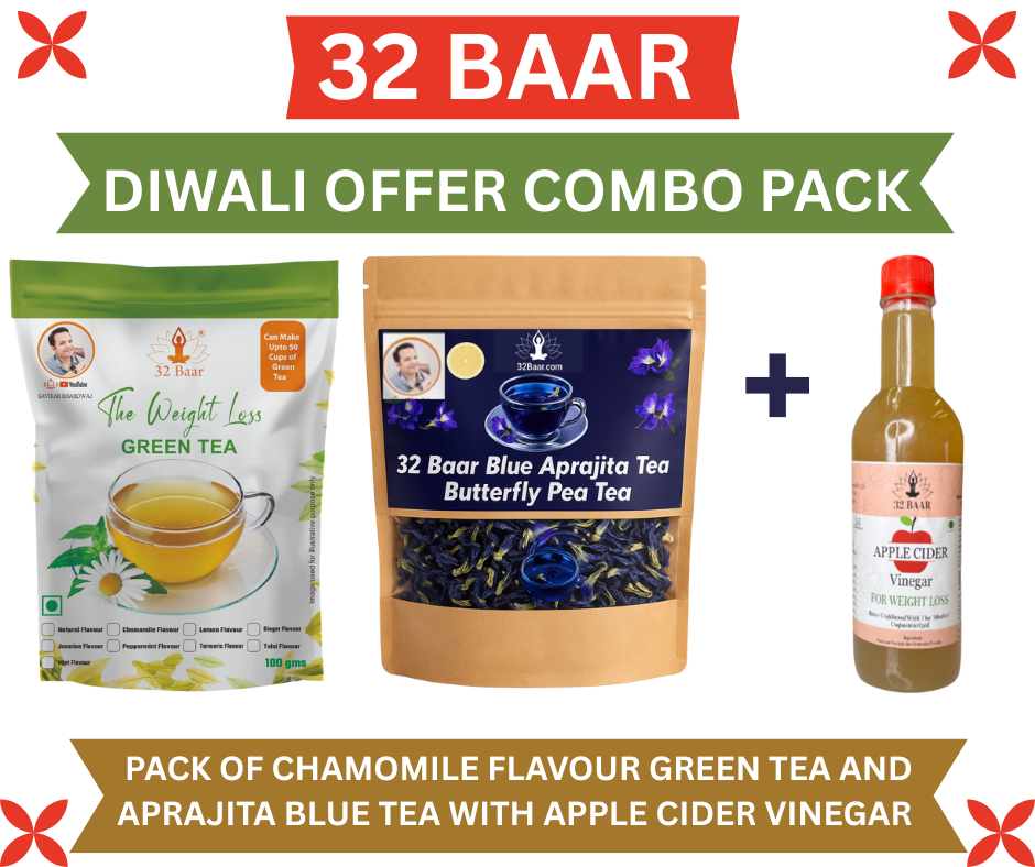 32 Baar Combo Of 2 Green Tea Bags(Chamomile.Lemon)& Apple Cider Vinegar1. 2 Green Tea Bags:Two Flavorful Options:Lemon Green Tea: Enjoy a zesty and invigorating pick-me-up with a citrusy twist.Tulsi Green Tea: Experience a calming and soothing blend infused with the goodness of holy basil (tulsi).Steep each tea bag in hot water for 2-3 minutes and […]