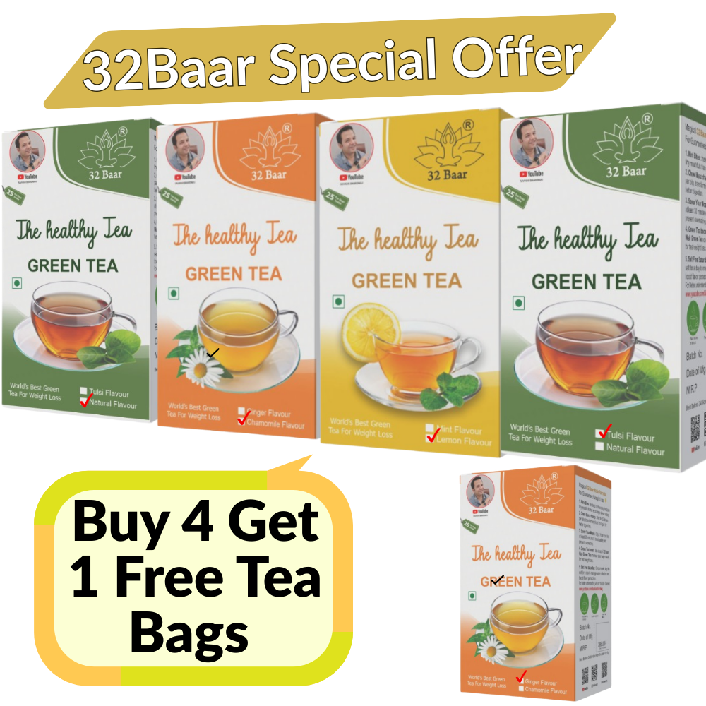 Buy 4 Get 1 Free ( Green Tea Bags Chamomile, Natural, Tulsi, Lemon And Ginger)