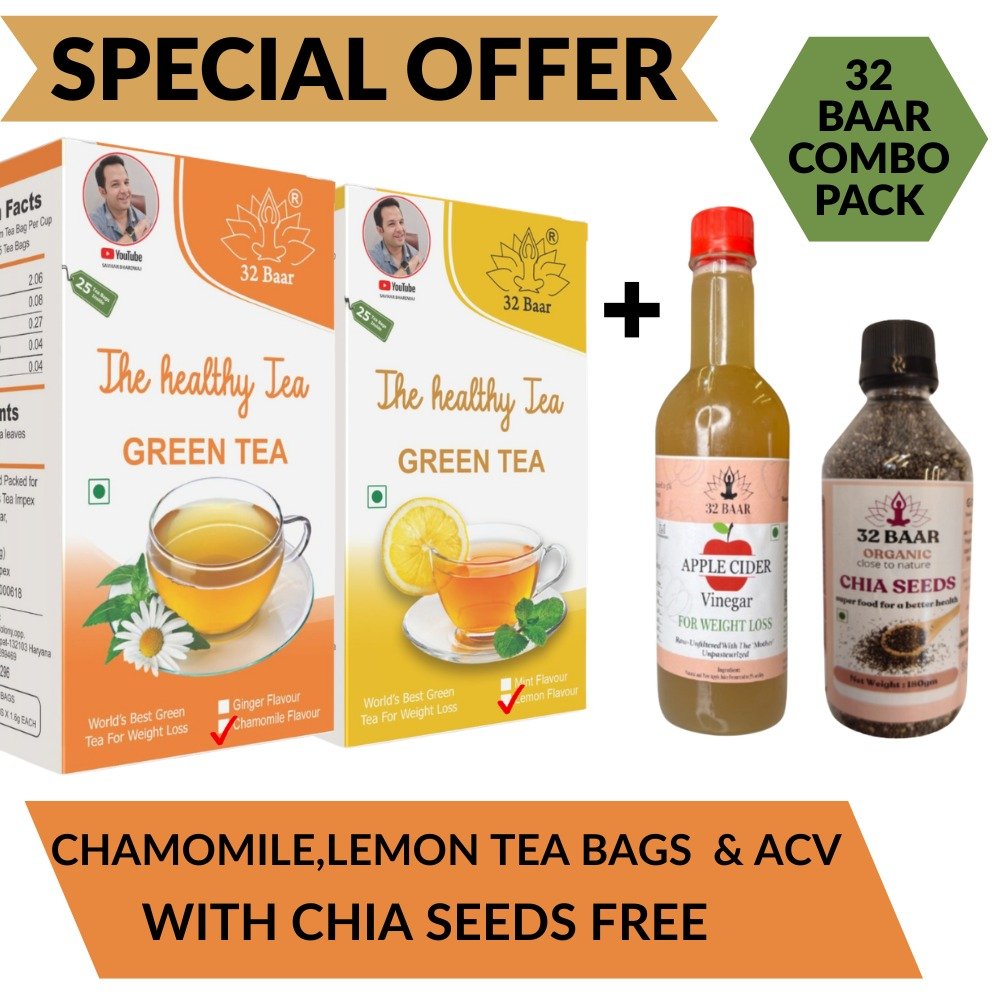 32 BAAR WEIGHT LOSS KIT (CHAMOMILE,LEMON LEAFS, MORINGA POWDER , CHIA SEEDS, ASHWAGANDHA ,ACV & CHAMOMILE TEA BAG)
